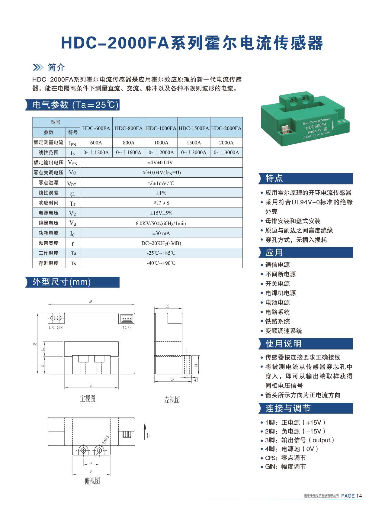 HDC-600FA系列霍爾電流傳感器是應用霍爾效應原理的新一代電流傳感器,能在電隔離條件下測量直流、交流、脈沖以及各種不規(guī)則波形的電流。