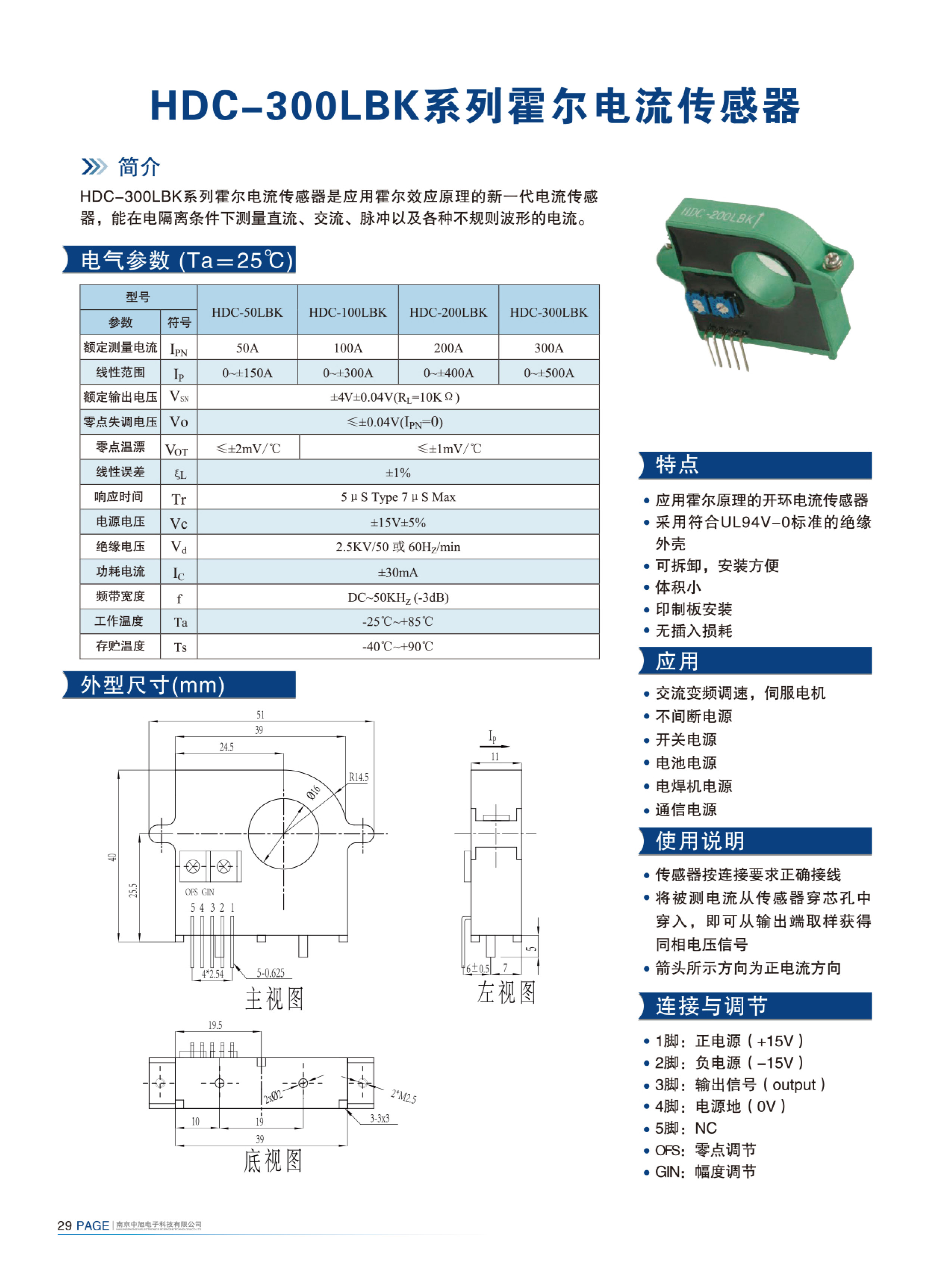 HDC-300LBK系列霍爾電流傳感器是應用霍爾效應原理的新一代電流傳感器,能在電隔離條件下測量直流、交流、脈沖以及各種不規(guī)則波形的電流。