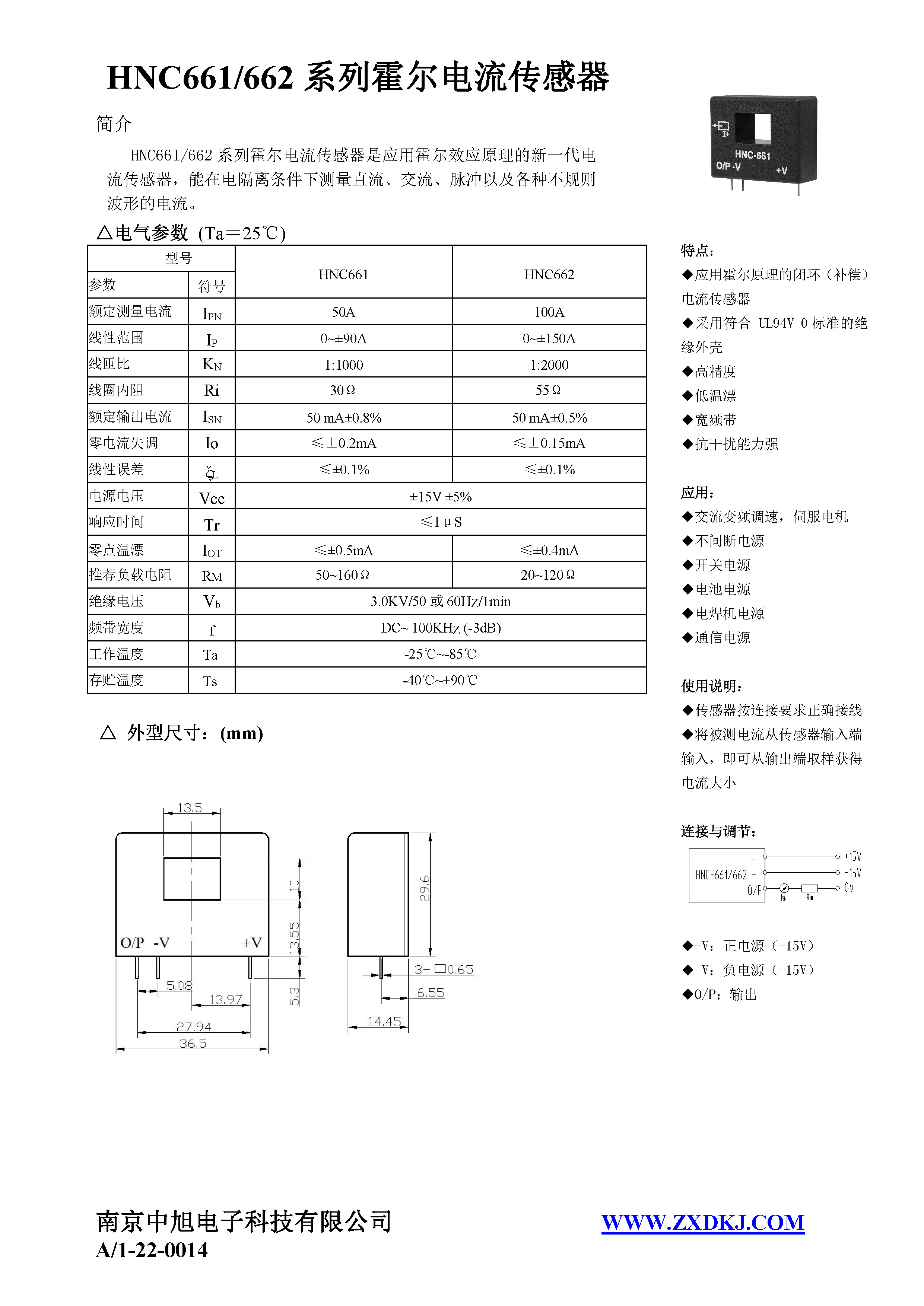 HNC-661系列霍爾電流傳感器是應用霍爾效應原理的新一代電流傳感器,能在電隔離條件下測量直流、交流、脈沖以及各種不規(guī)則波形的電流。