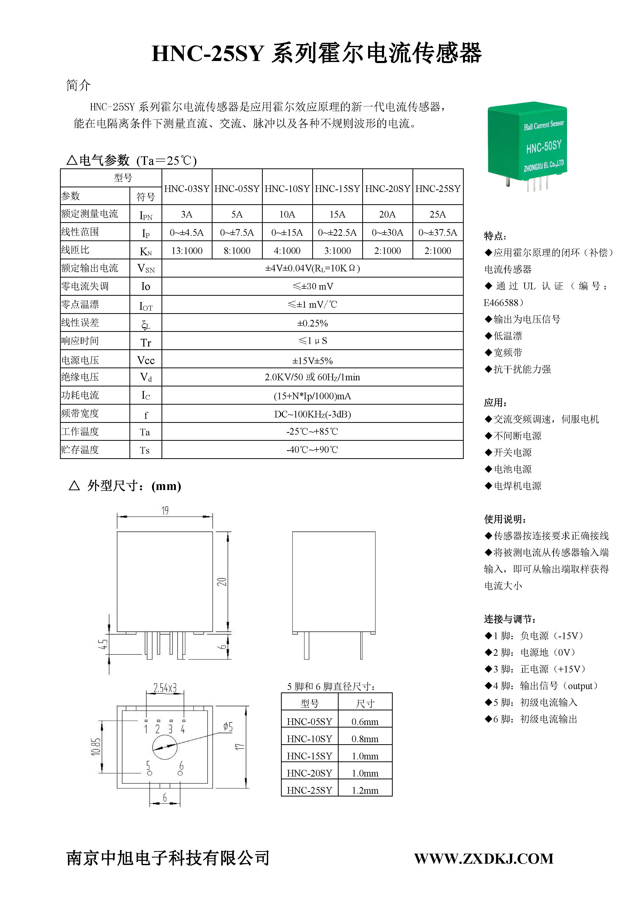 HNC-25SY系列霍爾電流傳感器是應(yīng)用霍爾效應(yīng)原理的新一代電流傳感器,能在電隔離條件下測量直流、交流、脈沖以及各種不規(guī)則波形的電流。
